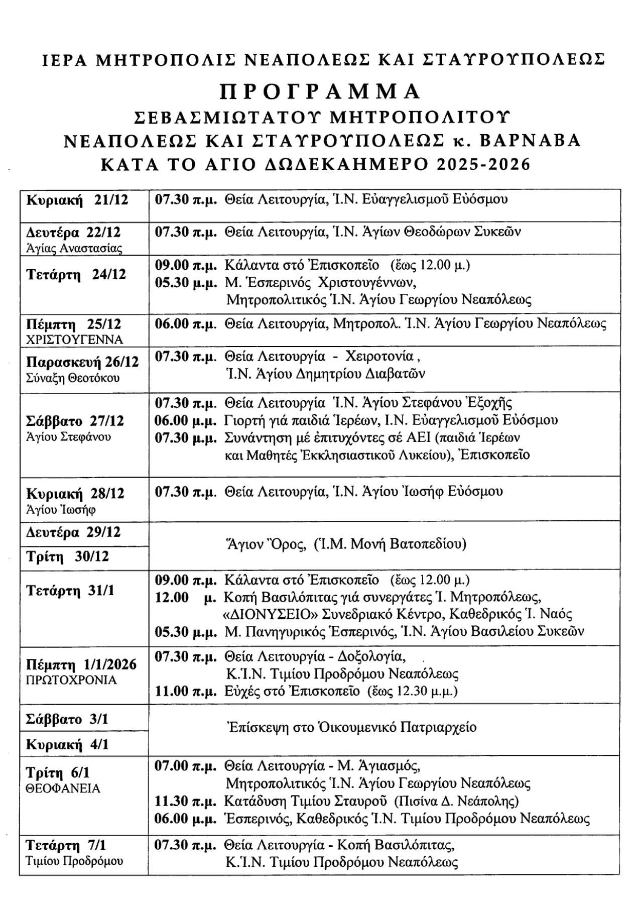 Την Τετάρτη 8 Μαΐου 2019, παραμονή της μνήμης του Αγίου και Ενδόξου Μεγαλομάρτυρος Χριστοφόρου, ο Σεβασμιώτατος Μητροπολίτης Νεαπόλεως και Σταυρουπόλεως κ. Βαρνάβας χοροστάτησε στον Αρχιερατικό Εσπερινό στον πανηγυρίζοντα Ιερό Ναό Αγίου Χαραλάμπους και Αγίου Χριστοφόρου Συκεών. Τον θείο Λόγο κήρυξε ο Αιδεσιμολογιώτατος Πρωτοπρεσβύτερος Γεώργιος Μπέτας, ο οποίος, παίρνοντας ως παράδειγμα το βίο του τιμώμενου Αγίου Χριστοφόρου, αναφέρθηκε στην αγιότητα ως τρόπο ζωής, γεμάτη από το λαμπροφόρο μήνυμα που εκπέμπεται από την Ανάσταση του Κυρίου μας. Στο τέλος του Εσπερινού ο Σεβασμιώτατος, αφού ευχαρίστησε τους πατέρες και τουςσυνεργάτες του Ιερού Ναού για τη φιλοξενία και την προετοιμασία της πανηγύρεως και τον πιστό λαό του Θεού για τη συμμετοχή του στη γιορτή της ενορίας, ευχήθηκε σε όλους χρόνια πολλά, καλά και ευλογημένα, πλημμυρισμένα από το φως της Αναστάσεως.