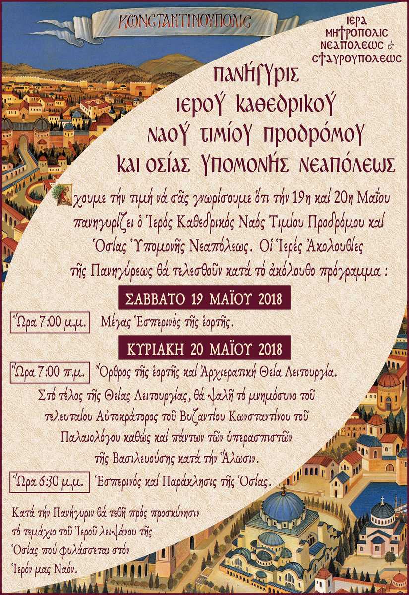 Ιερά Πανήγυρις Οσίας Υπομονής στον Ι.Κ.Ν.Τιμίου Προδρόμου Νεαπόλεως